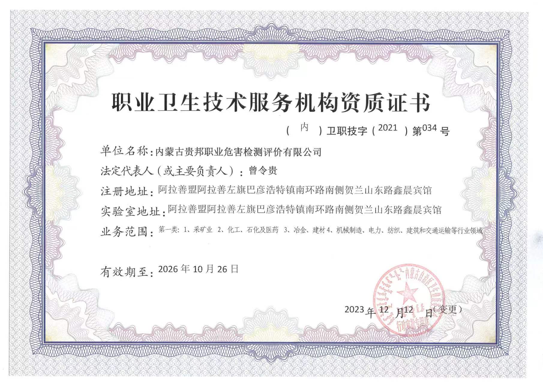 內(nèi)蒙古貴邦職業(yè)危害檢測(cè)評(píng)價(jià)有限公司(www.fjjyzt.com)版權(quán)所有 地址:阿拉善盟阿拉善左旗賀蘭山東路加氣站南側(cè)鑫晨賓館一樓 24小時(shí)熱線:18947252199 蒙ICP備:蒙ICP備21006705號(hào)-1 公安備案號(hào):50011802010212